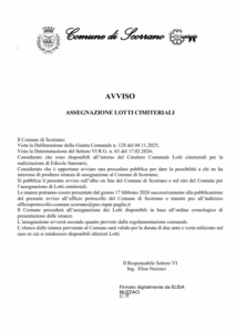 Si pubblica il presente avviso sull’albo on line del Comune di Scorrano e sul sito del Comune per l’assegnazione di Lotti cimiteriali.